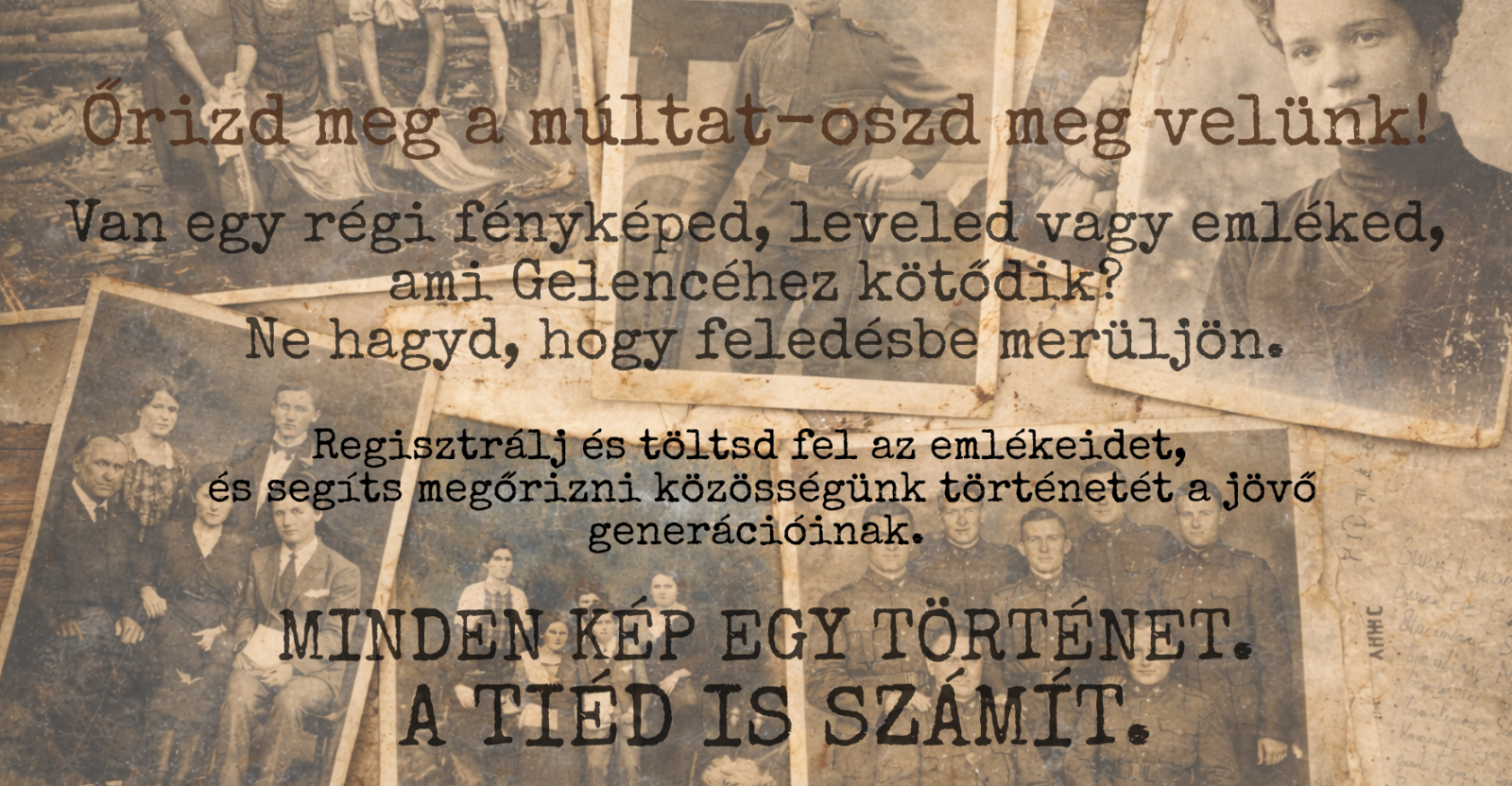 Gelence múltja nem könyvekben kezdődik, hanem az emberek emlékeiben: a padlásról lehozott dobozokban, a megsárgult fényképekben, a családi albumok lapjai között. Egy-egy kép egyszerre személyes és közösségi érték is: egy arc, egy ház, egy ünnep vagy egy életkép, amely valaha része volt a falu mindennapjainak.